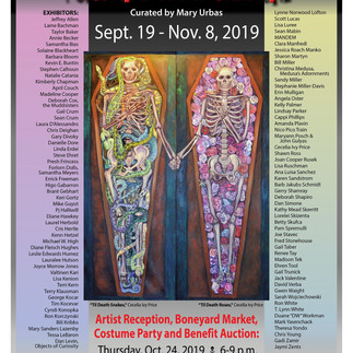 With our work at the "Skull & Skeleton in Art" exhibit at The Gallery at Lakeland Costume Party Reception/Boneyard Market/AUCTION, October 24, 6-9.